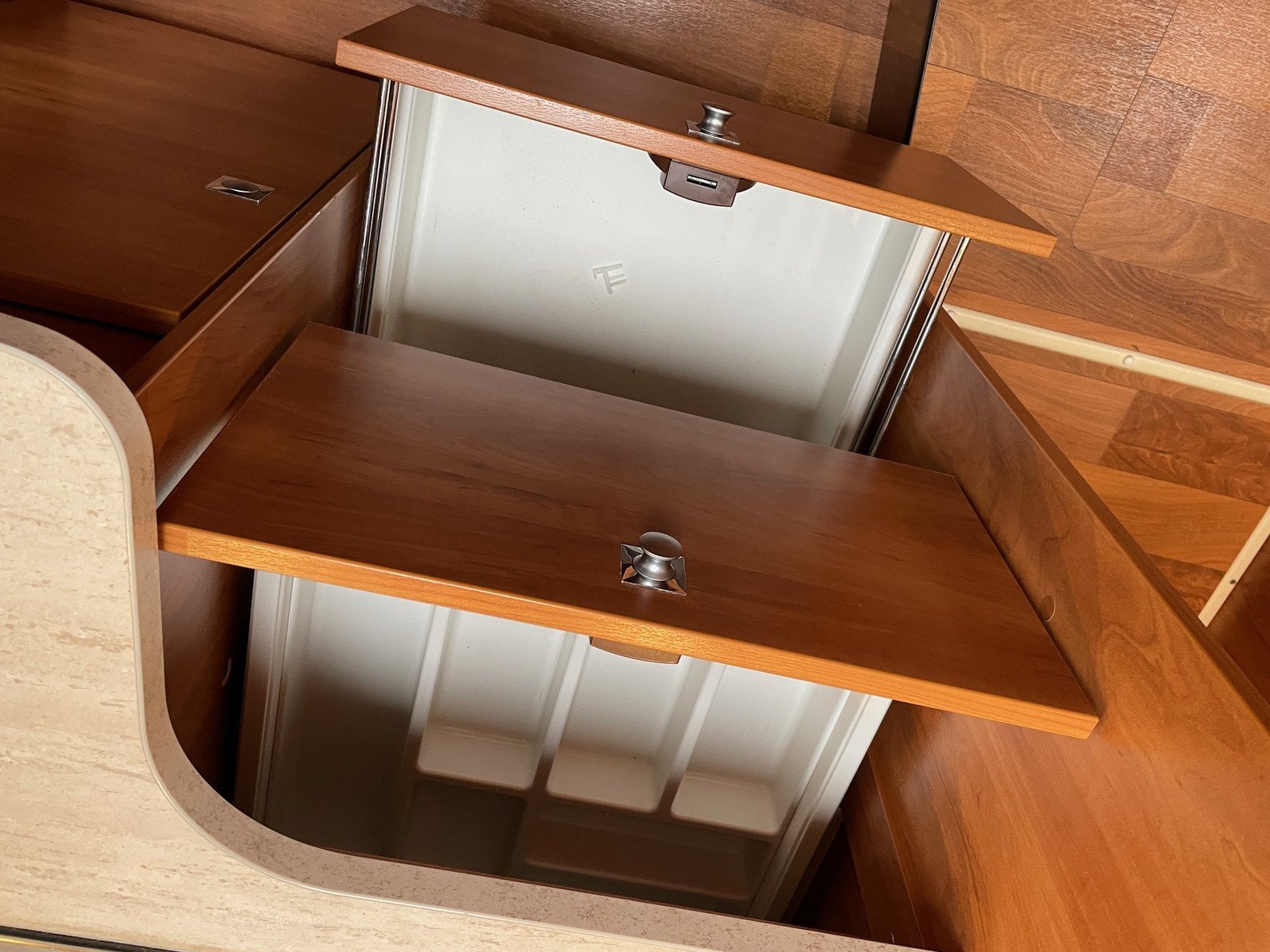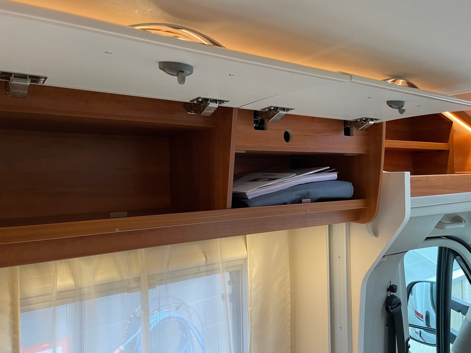 Nous avons inclus ici un modèle populaire de Dethleffs. Il s’agit d’un camping-car qui convient parfaitement à une petite famille jusqu’à 4 personnes. Le modèle dispose d’un système électrique pratique. lit escamotable au milieu au dessus du coin salon, à l’arrière il dispose de 2 lits simples avec possibilité d’être rallongé. Ce véhicule dispose d’une télévision, d’une alarme de gaz NX, d’un auvent et d’un porte vélos sur la paroi arrière (3 vélos). Avec cette solution de lit, vous obtenez également un garage très spacieux !