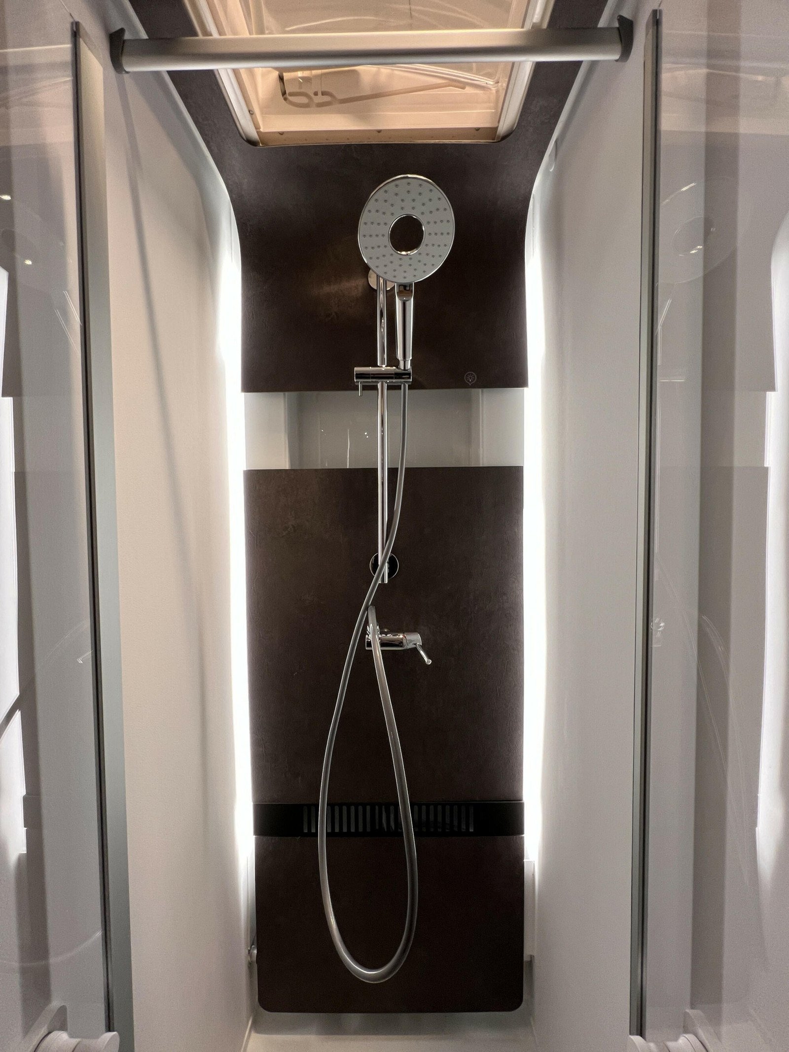 Moteur 2,2 / 180 ch, associé à une transmission automatique à 9 rapports ultra-souple Lit relevable / abaissant électrique à l’avant Deux lits simples à l’arrière + conversion de lit Chauffage à eau ALDE Éclairage intérieur LED avec gradation Auvent Jantes en aluminium LED à l’arrière Feux Capteur arrière Climatisation automatique dans l’habitacle Calandre finition noir brillant + entourage des feux dans un ton plus foncé Volant multifonction gainé de cuir + levier de vitesses Stores cabine Antipatinage Tableau de bord Facelift Régulateur de vitesse Ordinateur de bord Vitres et rétroviseurs électriques Porte moustiquaire Machine à café intégrée dans la cuisine 5ème place Grand garage arrière avec porte des deux côtés + crochets de chargement Banquette de cuisine en L Chaises confort avant réversibles avec accoudoirs des deux côtés Préparé pour l’installation TV Salle de bain en deux parties avec cabine de douche séparée Réfrigérateur et congélateur combinés Armoires lumineuses dans le lit arrière etc.