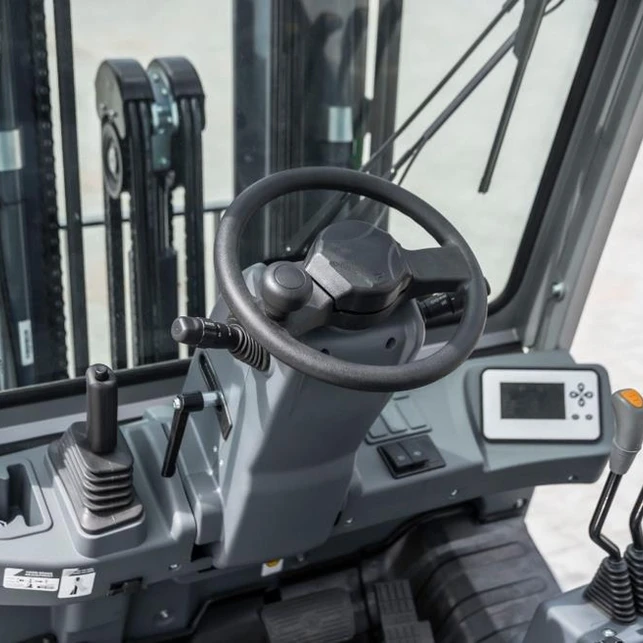 Le GH25-E est équipé d’un système de direction entièrement hydraulique qui fournit de l’huile en cas de besoin et réduit ainsi la consommation d’énergie du chariot élévateur électrique.