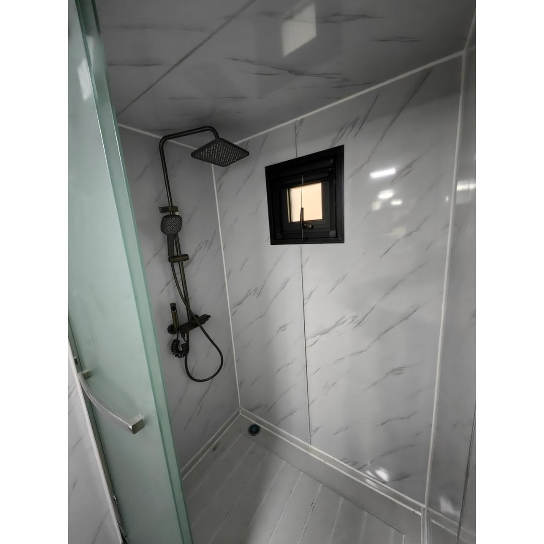 Cette petite maison offre une solution de vie compacte et moderne, idéale pour les minimalistes ou comme mobil-home. La maison est entièrement équipée avec une salle de bain, un salon, une cuisine et deux pièces supplémentaires.
