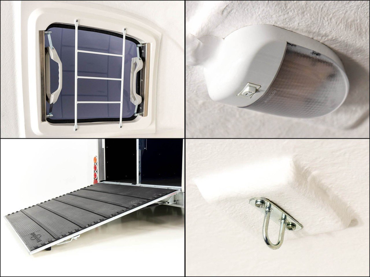 Toujours frais devant : grâce à la fenêtre avant réglable dans cinq directions, il n’y a pas d’air épais dans le XANTHOS MAXIMUS . Un déflecteur d’air installé de série et une trappe de toit pouvant être installée ultérieurement sur demande assurent également un apport d’air frais sans courant d’air. Mais le confort n’est pas la seule priorité chez Humbaur : la cloison verrouillable, les parois latérales en poly massif et le profilé de cadre galvanisé à chaud font du XANTHOS MAXIMUS un van pour chevaux stable et robuste pour les exigences les plus élevées.