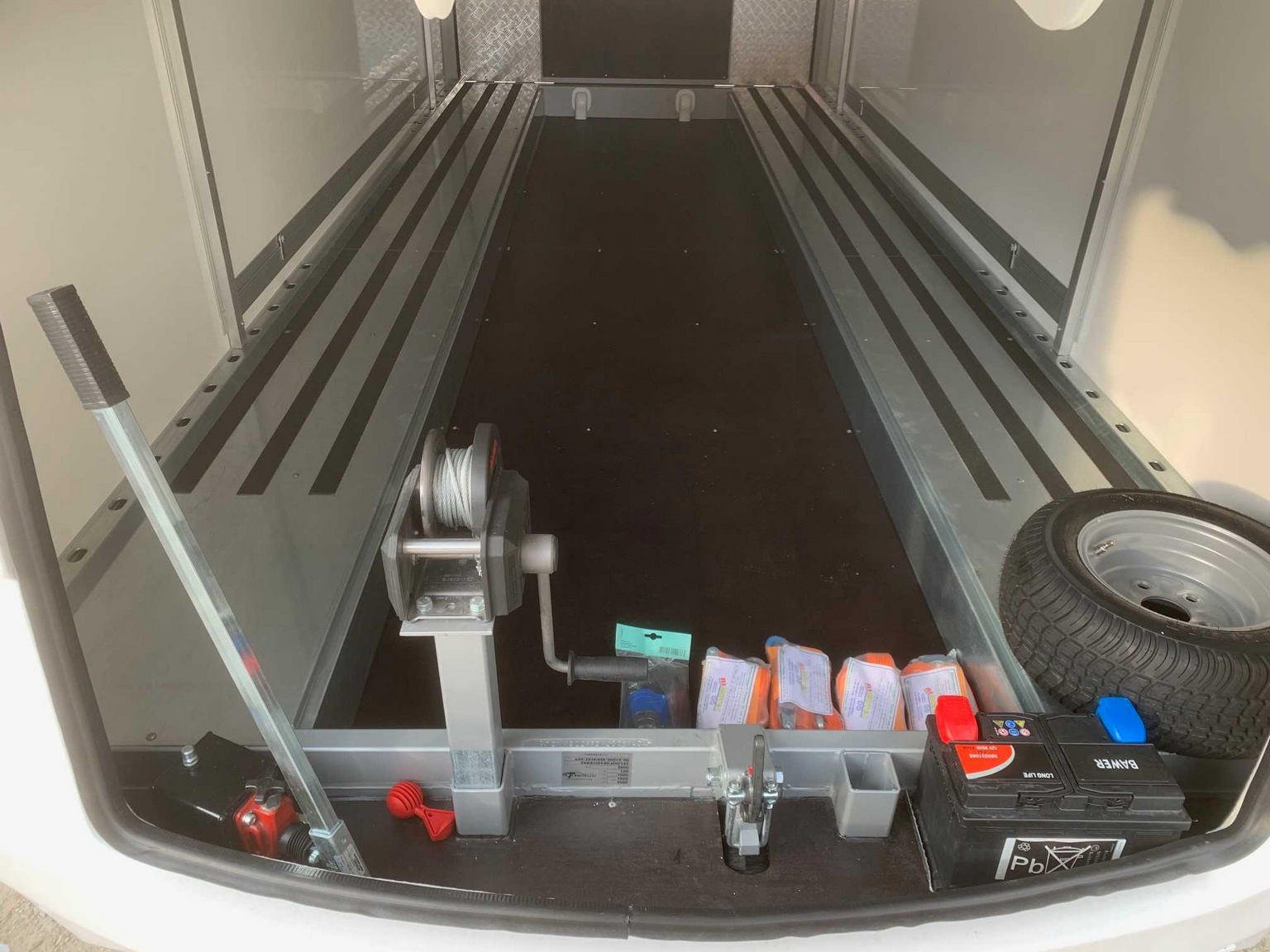 • Rail d’ancrage à gauche et à droite sur toute la longueur de la remorque.